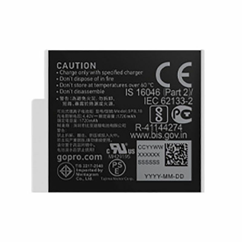 ・進化した1720mAhリチウムイオンバッテリーにより、広い温度範囲において標準的なGoProバッテリーと比較して カメラのパフォーマンスが高まります。