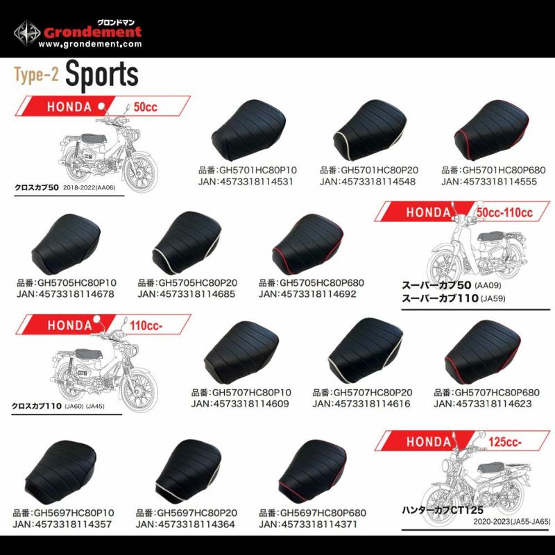 5. Grondement グロンドマン 3Dシートカバー TYPE2 スポーツシートカバー 50cc,50cc-110cc,110cc,125cc~クロスカブ50(AA06)/スーパーカブ50(AA09)/スーパーカブ110(JA59)/クロスカブ110(JA60)(JA45)/ハンターカブ125(JA55-JA65)