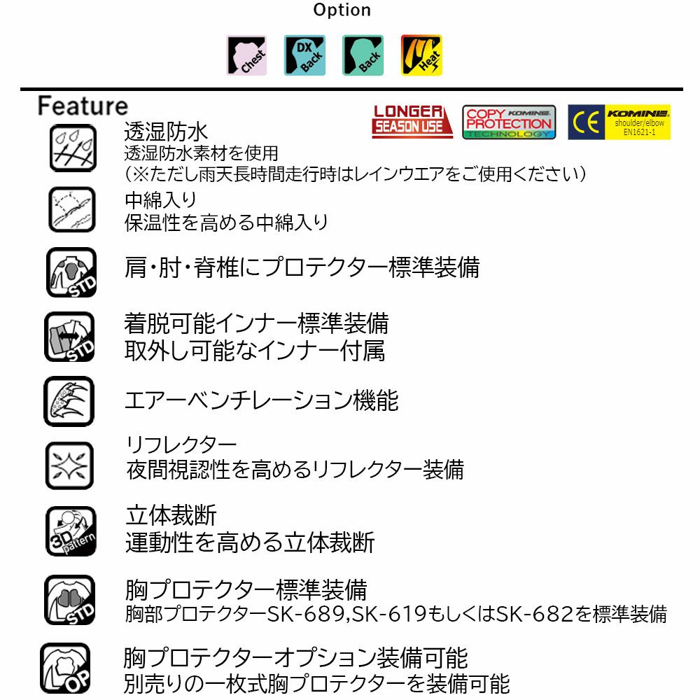 他の画像を見る 防風性と保温性を持ったソフトシェル素材を使用したウインタージャケット KOMINE コミネ プロテクトソフトシェルジャケット ソリアーノJK-627 販売価格 ¥ 24,200 税込 〜 販売価格 ¥ 税込 防風性と保温性を持ったソフトシェル素材を使用したウインタージャケット 詳細を見る お気に入りに登録する