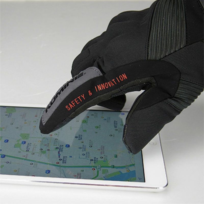 選べる別売り電源により、充電式バッテリーと、シガープラグによる車体電源とを用途に応じて使い分けられます。指先の特殊レザーによりスマートフォン操作も可能。