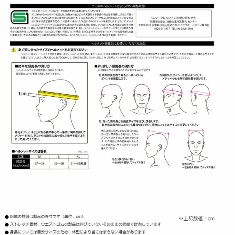 - 被り心地や内装のサイズにご不安がある場合には、ご使用を止め、必ずお問合せフォームからご連絡下さい。