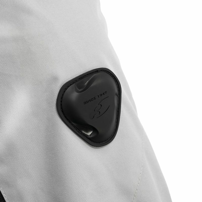 大型ベンチレーション付きテキスタイルジャケット。肩・肘にはCE規格プロテクターを装備し、胸部プロテクターも標準装備。