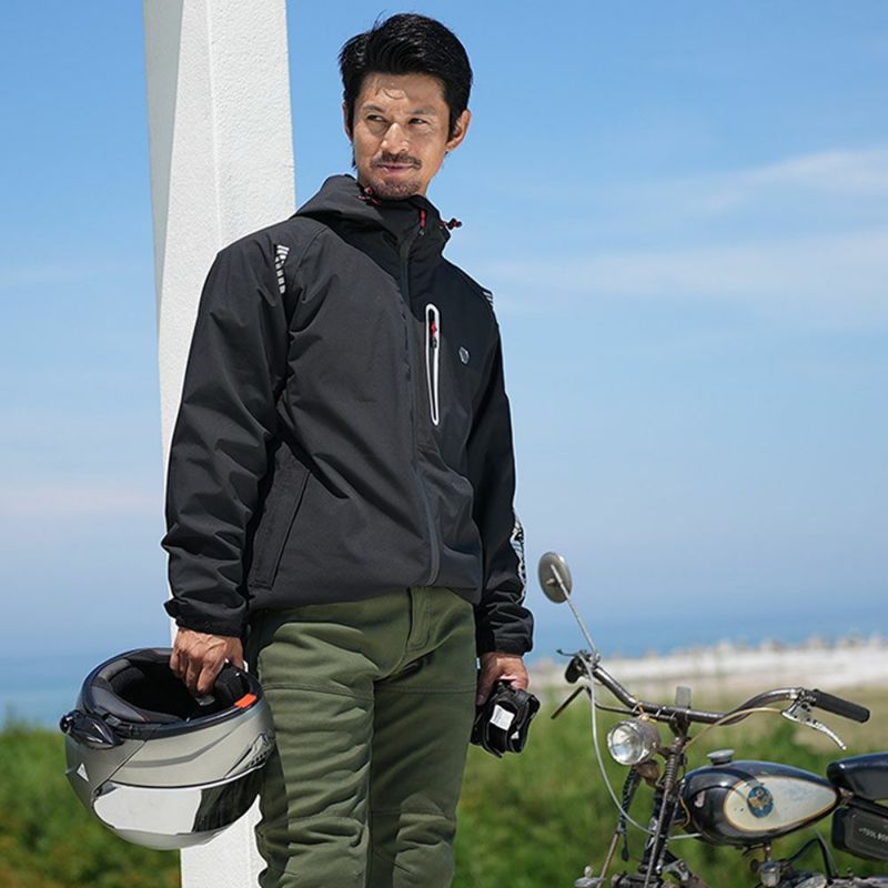 伸縮性の高い透湿防水生地を使用したウインターパーカ。保温性に優れた中綿入りなので、暖かさをキープし快適なライディングをサポート。