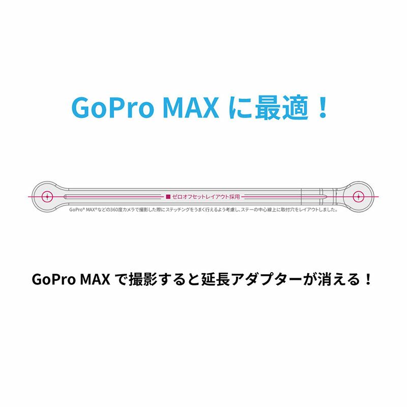GoPro MAXなど、360度カメラ使用時や自撮りでの撮影を考慮し、取付穴が2方向共にならない様な設計を採用。