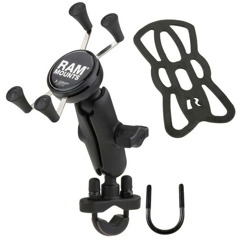 U字ボルトベースとX-グリップホルダーを繋いでいるダブルソケットアームMの3種類がセットになったマウント。