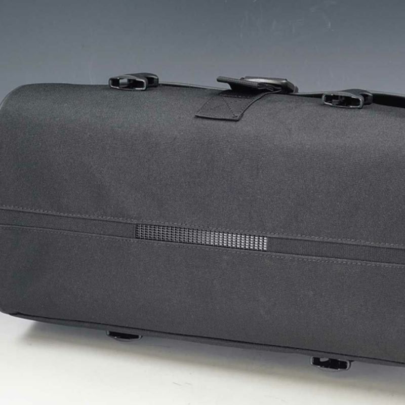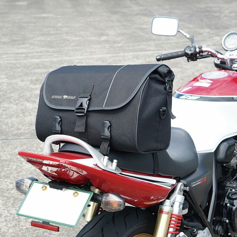 外側にはフラップ部、背面部に差し込みファスナー付きポケットを装備、フロント、ボトム、バックにコの字型のパネルを装備しているので積載安定性と内容物のプロテクターとなり車体とバッグが一体化しがっちりしっかりマウントできるので荷崩れの心配が軽減されます。