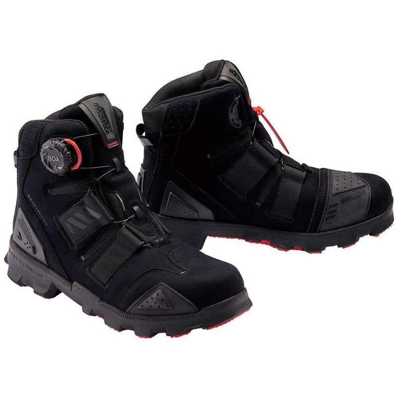 大型ダイヤルとプルタブを操作することでグローブをはめた状態でも簡単でスピーディーな着脱を可能にするBOAシステムを採用。