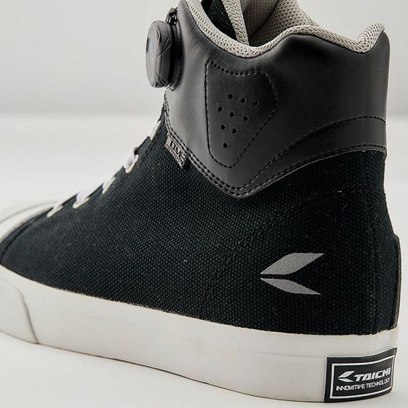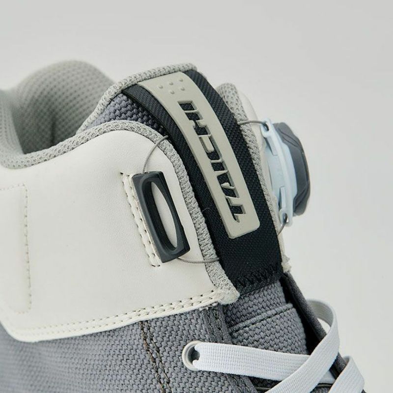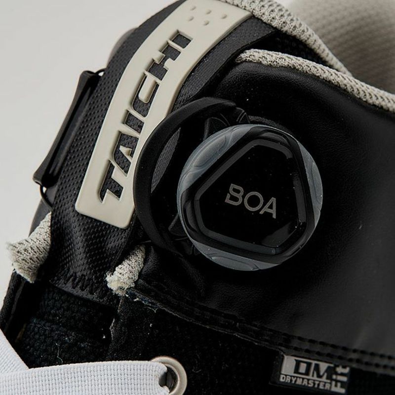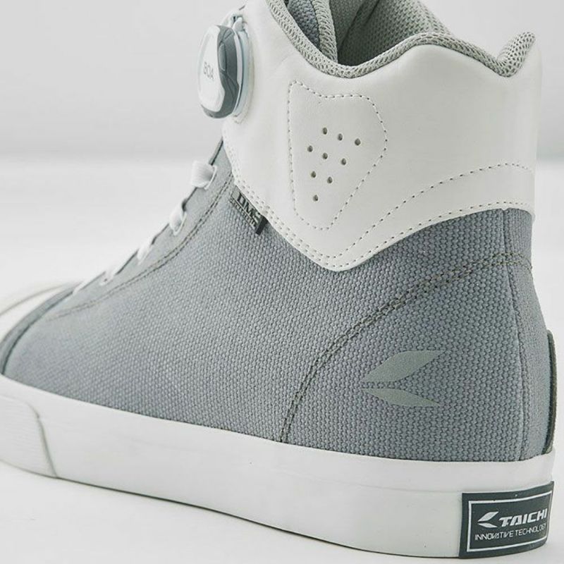 アッパー内部にはTAICHIオリジナルの防水・透湿素材"ドライマスター"を採用し、全天候での使用に対応。表地にはカジュアルなキャンバス地のほか、TECH WHITE・GRAY/BLACK・ALL BLACKには耐久性に優れ、メンテナンスも容易な合成皮革“Clarino®”を、CORDURA KHAKI・CORDURA BLACKにはナイロンの7倍もの強度をもつ耐久性に優れた繊維「CORDURA®」を使用し、コーディネートの幅を広げました。ソールにはvibram社との共同開発により、ライディングに必要と考えられるグリップや排水性を考慮したハイグリップソールを採用。 また、かかと内側には新たにヒールガードを採用し、シューズ本体へのダメージを軽減。 タウンシューズの様なデザインながらもライディングに必要な機能を盛り込みました。