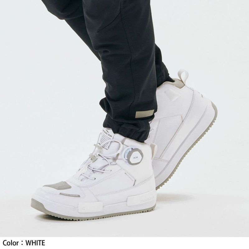 ストリートファッションに合うスニーカーのようなデザインながら、防水性能やプロテクターなどライディングに必要な機能を兼ね備えたライディングシューズ。