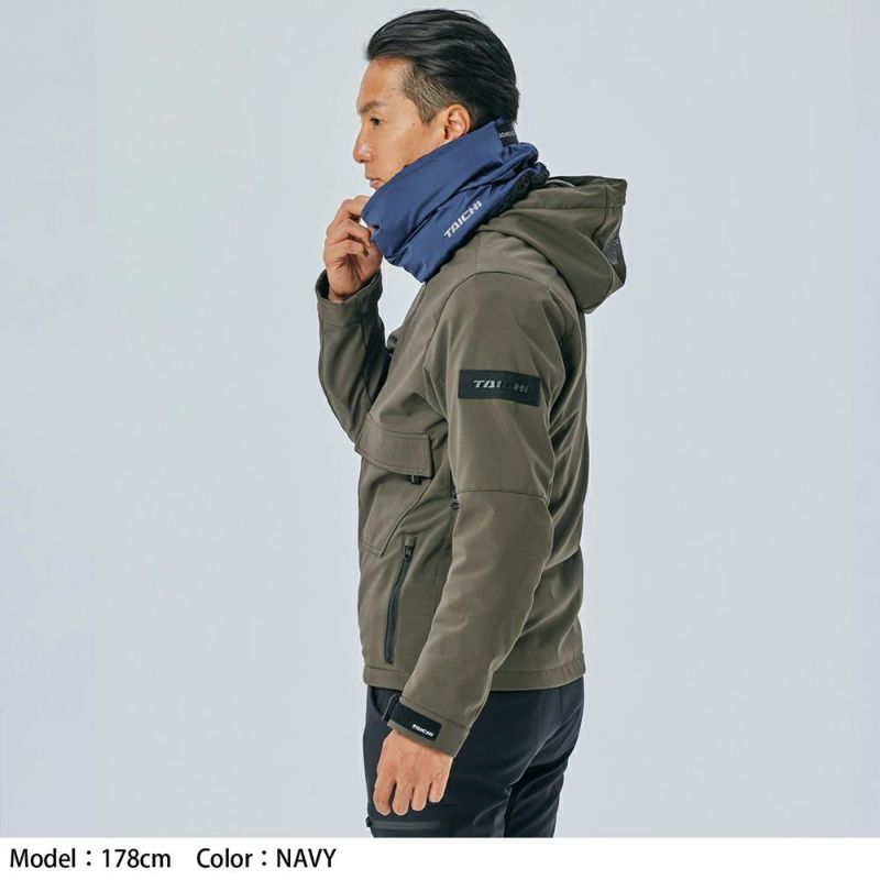 ボリュームのある形状がヘルメットとジャケットのすきまを埋める、保温性に優れたネックウォーマー。
