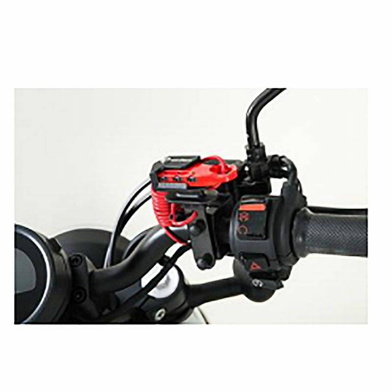 ハンドル装着部からケーブルを引き出してヘルメットをロック!(ジェットヘルメットのDカンはストレートのみOK)