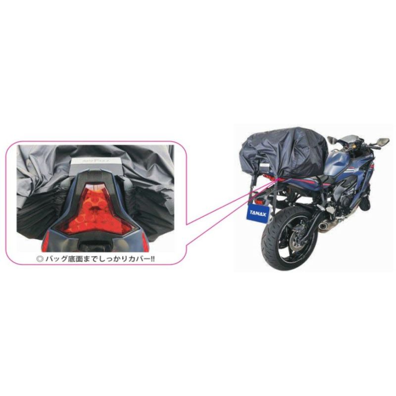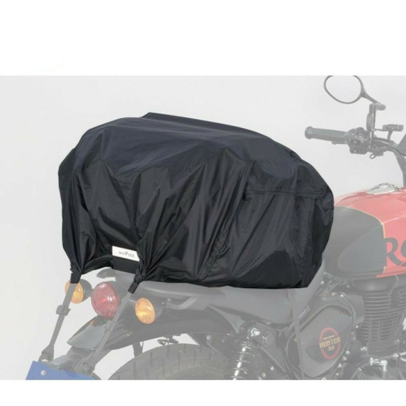 余ったカバーをバッグの固定ベルトに巻きつけ、 面ファスナーで固定。◎バッグ底面までしっかりカバー!!