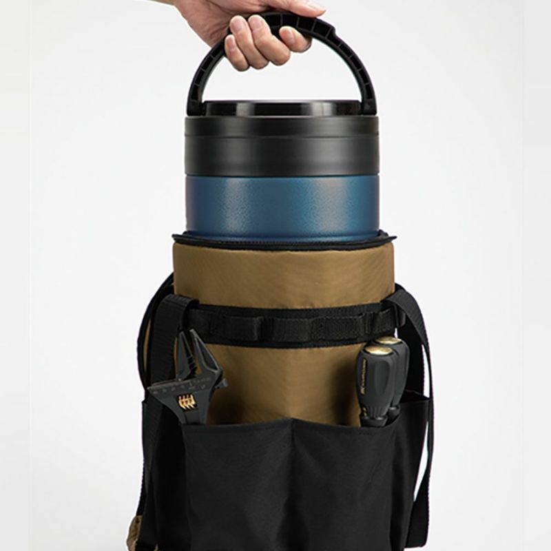本体の外周部ポケットは工具・アウトドアギヤの収納やカラビナなどの取り付け可能なベルト付きです。
