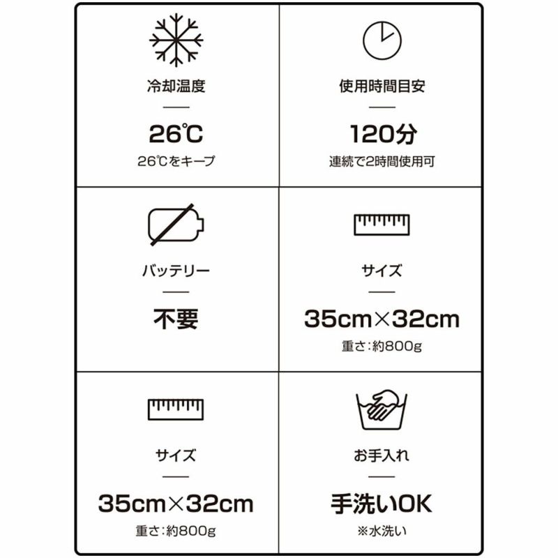 保冷剤とは違う!26℃を維持!!猛暑時でも約2時間の冷感が続きます。