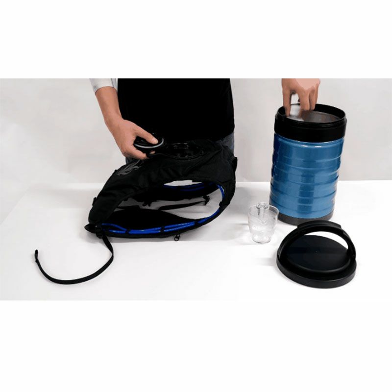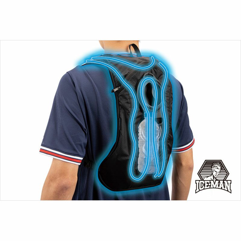 「アイスマンベスト」の冷却は、ベスト背面タンクに入れた150mlの水を氷らせた500~650mlのペットボトルで冷却、チューブを通して全体に冷えた水を循環させるというシンプルかつダイレクトなシステムによるもの。