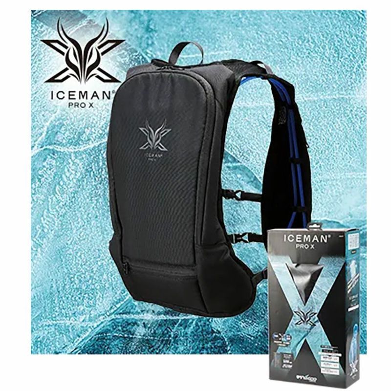 ●アイスマンProXにアイスハイドロレーションを取り付ける事で空調ウエアの中に使用できいつでもどこでも水分補給ができる。