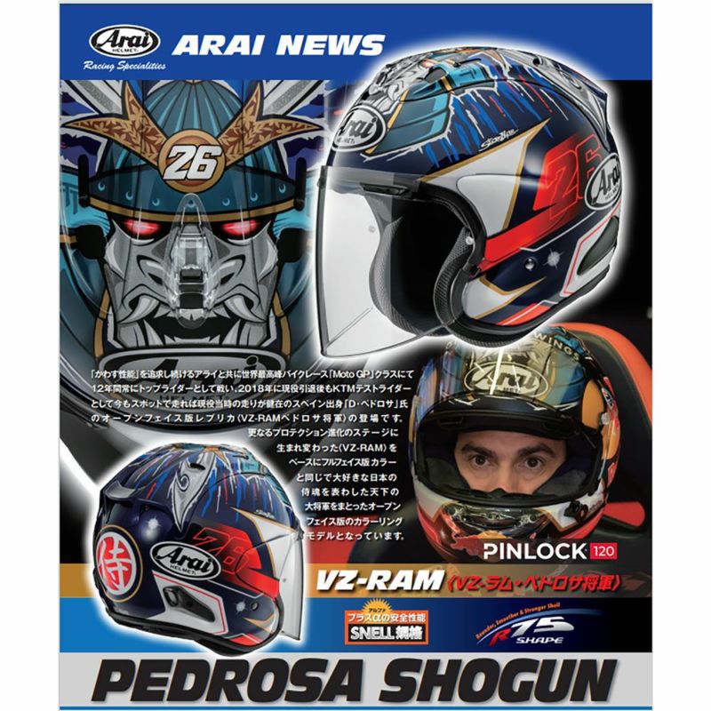Arai アライ ヘルメット さらなるプロテクション進化のステージに生まれ変わり、ライダーの新しい楽しみを広げる新世代オープンフェイス ヘルメット Arai アライ オープンフェイス VZ-RAM PEDROSA SHOGUN(ペドロサショウグン)スポーツジェット