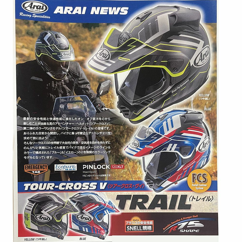 Arai アライ ヘルメット 最新の安全性能と快適性能に進化したオン・オフ両方を楽しむことが出来る真のアドベンチャーヘルメット Arai アライ オフロード ヘルメット TOUR-CROSS V TRAIL (ツアークロスV トレイル)