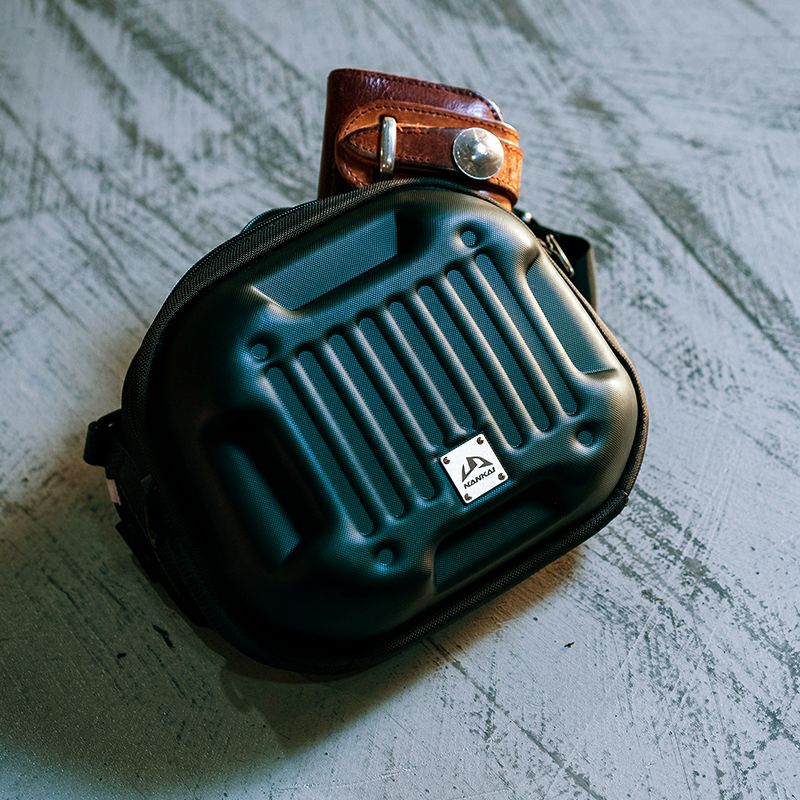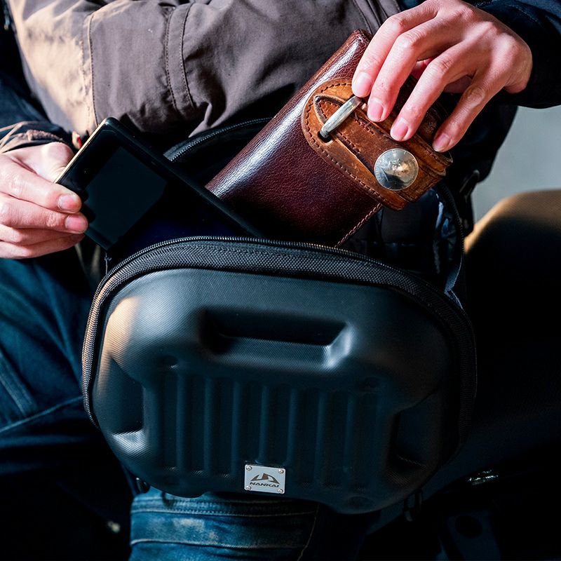 ・ポリウレタン樹脂製のハードパネルを前面に使用したスタイリッシュなヒップバッグ