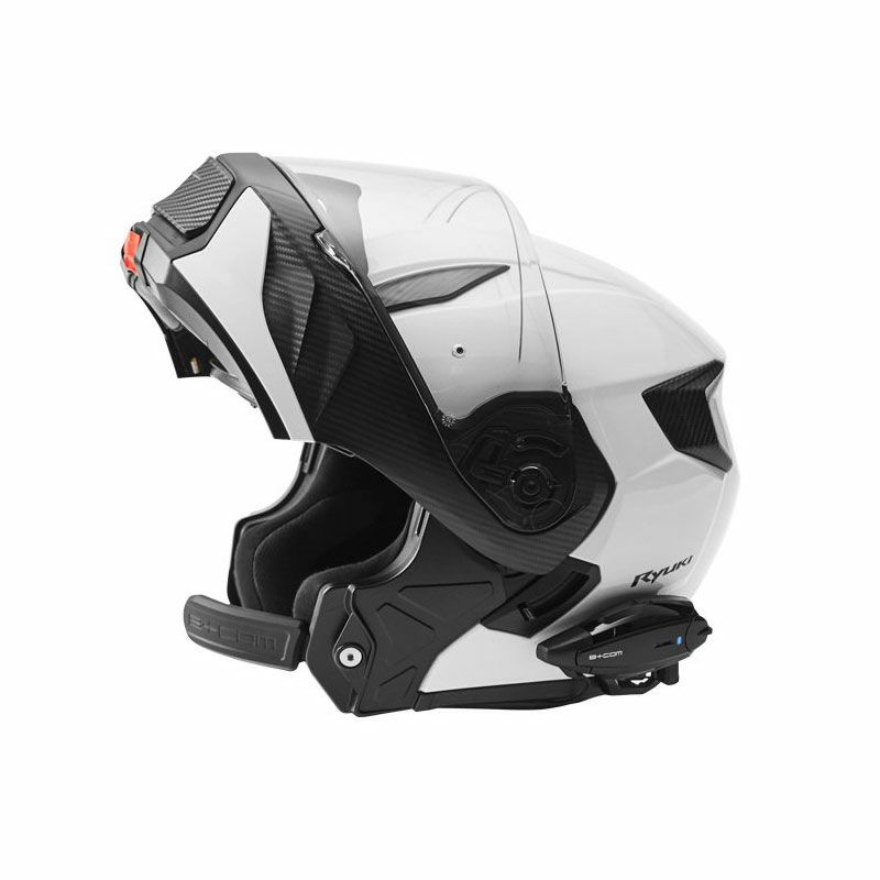 ユーザー様のステータスを高める「B+COM」ロゴを配置し、ヘルメット装着時のスタイリッシュな印象を演出します。