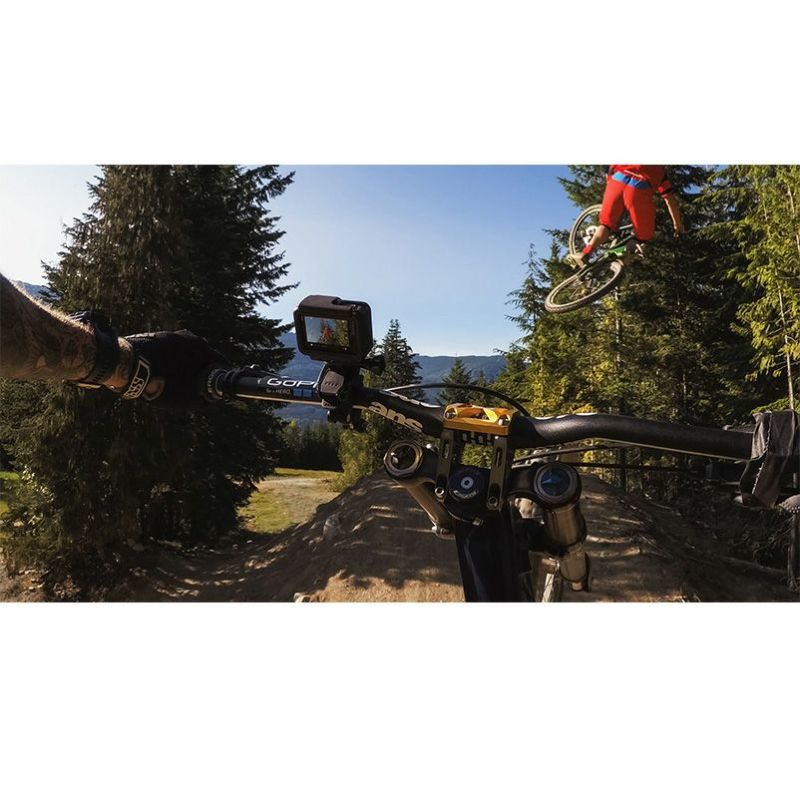 GoProをハンドルバー、シートポスト、スキーストックなどに取り付けます。ヒンジ付きの設計により、さまざまな取り付け位置に簡単に固定できます。