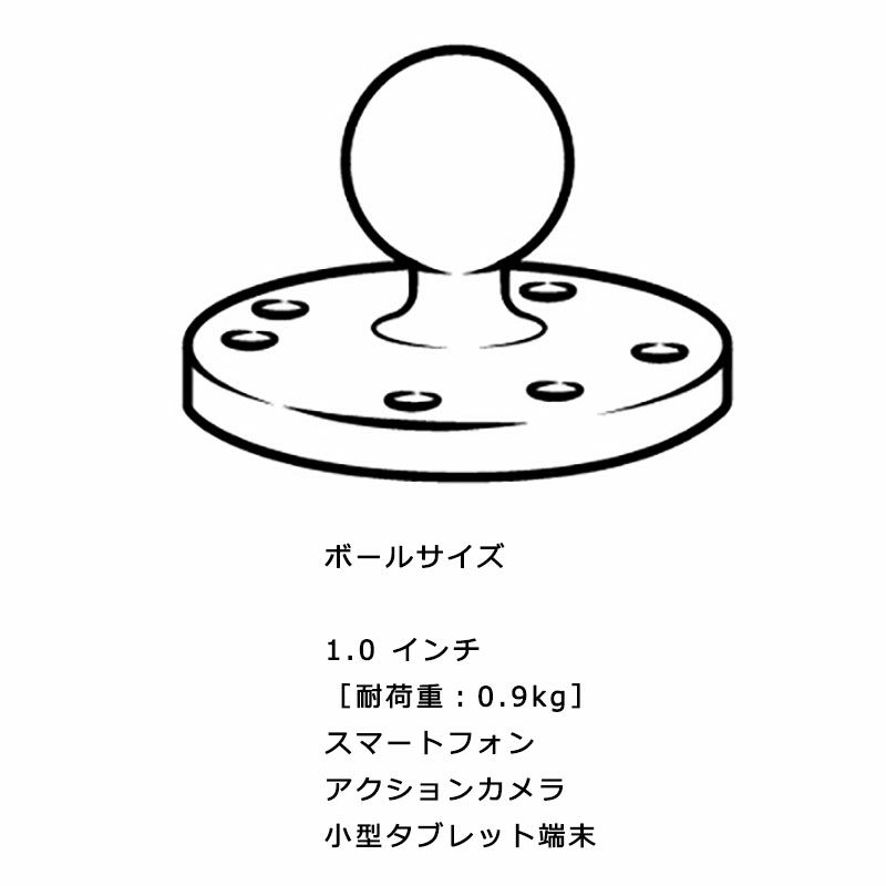 RAMマウントの1.5インチボールシステムを使う為の2.5インチ(63.5mm)のラウンドベース(AMPS規格ネジ穴)は金属や木材などにネジ止めして使います。