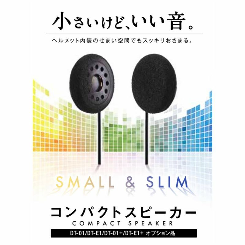 ヘルメット内装のせまい空間でもスッキリおさまる。音質にもこだわったコンパクトスピーカー。