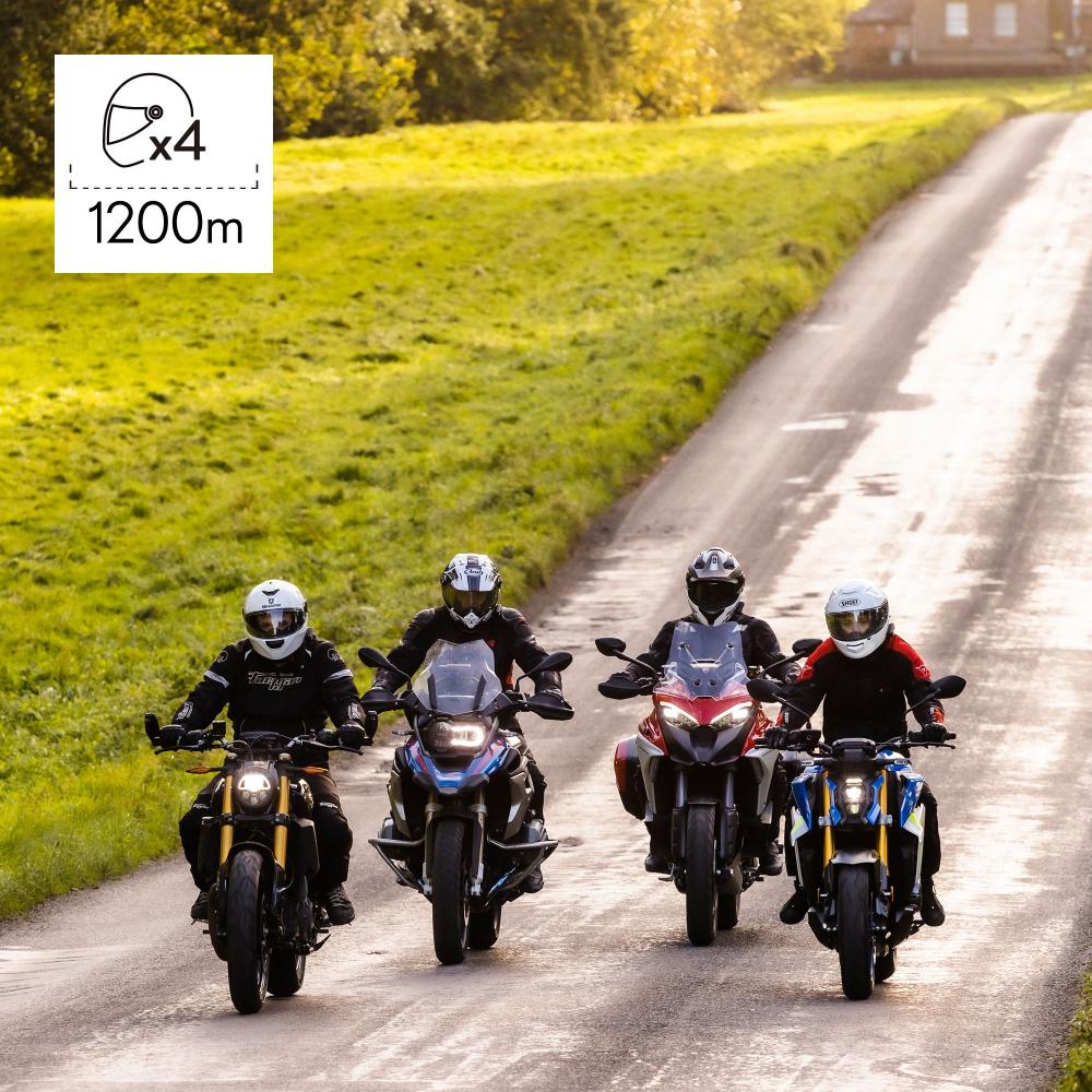 グループでのツーリングに最適最大通信距離1200m、自分を含む4人まで接続可能。通勤・通学や街乗りはもちろん、高速道路に乗っての遠出やツーリングにも活躍します。ソロで、家族や友人と、ワンランク上のバイクライフを楽しめます。 |