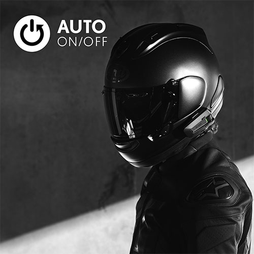 ー 電源のオートON/OFF IMUセンサーがインカム本体の移動や静止を感知し、インカムの操作をすることなく自動的に電源をオン/オフします。 電源の消し忘れを防ぐことができ、バッテリー消費を抑えます。 →オートON/OFF機能に関する質問集はコチラ |