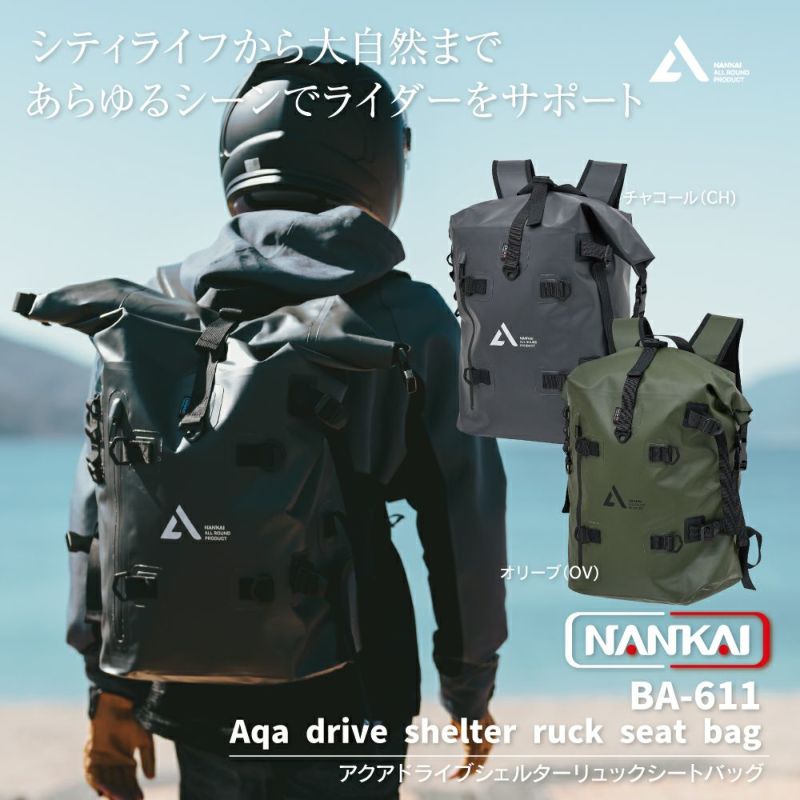 シティライフから大自然まで あらゆるシーンでライダーをサポート NANKAI ナンカイ アクアドライブシェルターリュックシートバッグ 品番:BA-611