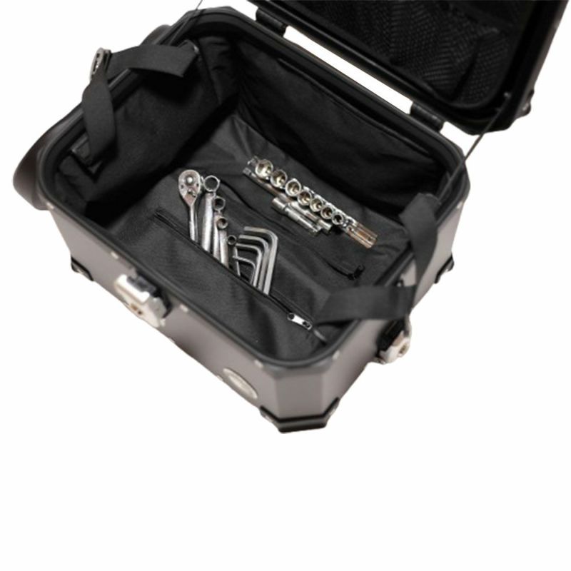 荷物を衝撃から守る【COOCASE】世界初!長さと角度が調整できるアジャスタブルバックレスト標準装備 COOCASE(クーケース)Q5/55L ADJバックレスト アルミトップケース シルバー