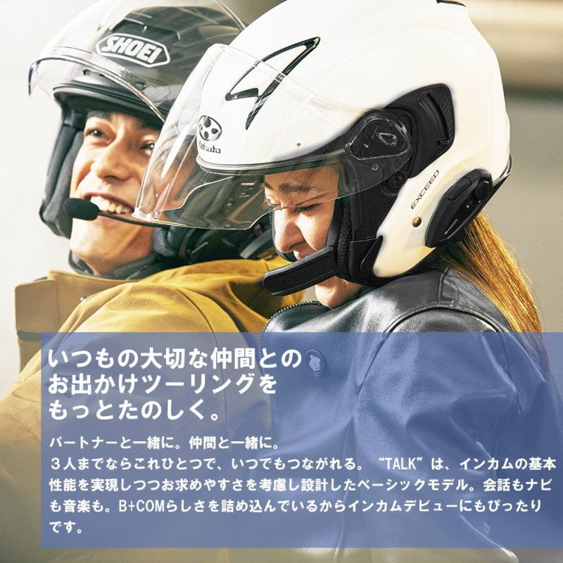 「B+COM TALK ペアユニット」は、2人分のB+COM TALK本体と付属品を同梱。パッケージをひとつにまとめることで、単品の組み合わせよりお得