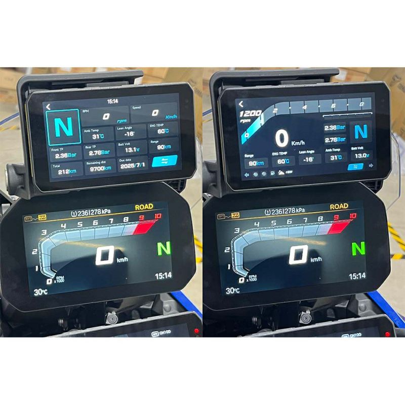 タイヤ空気圧、バッテリー、電圧、エンジン温度やスロットル開度を表示できます。