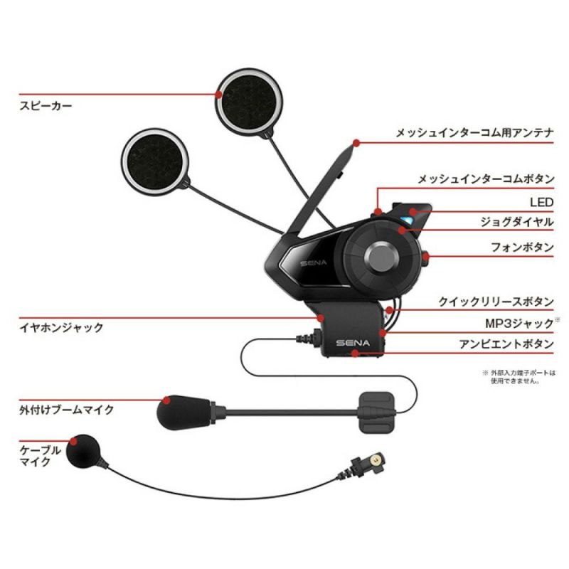 30K には20分間の充電だけで、約2時間のBluetoothもしくはMeshインターコム通話が可能となるクイック充電機能があります。 革新的なデュアルアンテナを採用することにより、30KはBluetoothとメッシュインターコム機能を同時に使用できます。 走行中グリップから手を離すことなく、ボイスコマンド(英語)により各種操作を行うことができます。セナ伝統の簡単操作ボタンにより 直感的な操作で音楽、電話、インターコム機能を自由自在に操ります。また 20Sアクセサリーとの互換性があります。