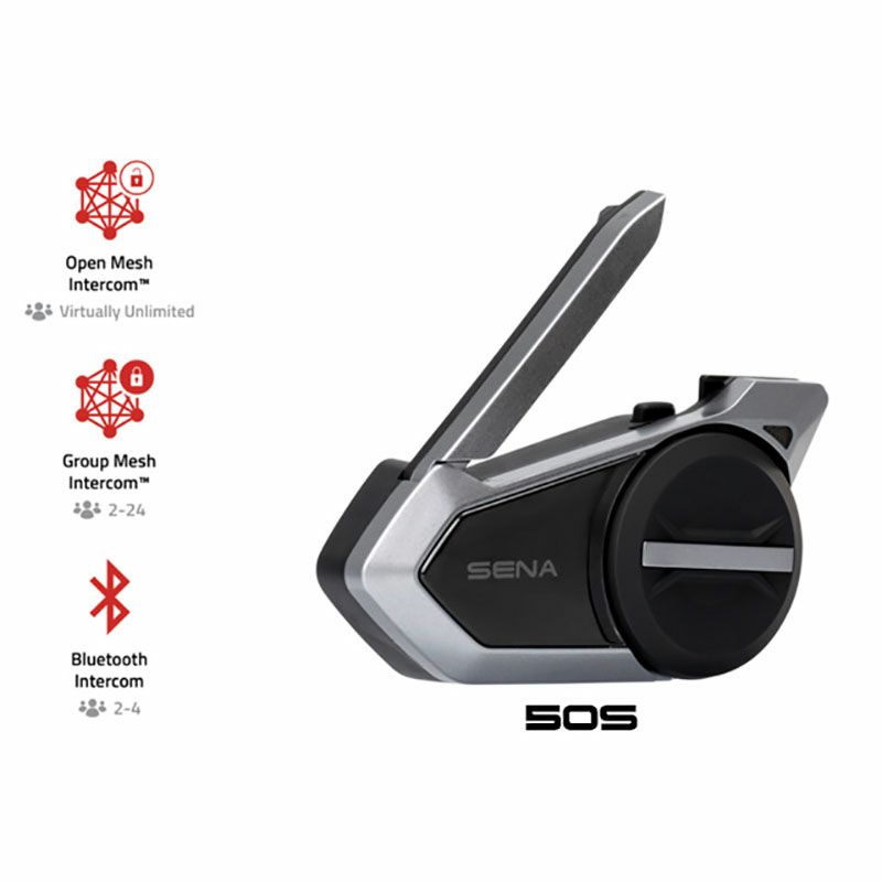 50Cは、Meshインターコム通話とBluetoothインターコム通話の両方が可能です。 どのSENAインカムとも快適なおしゃべりができます。 Meshインターコムは、オープンメッシュ(9チャンネル)とグループメッシュ(グループ作成)の2種類から選択、状況にあわせてストレスフリーな通話ができます。