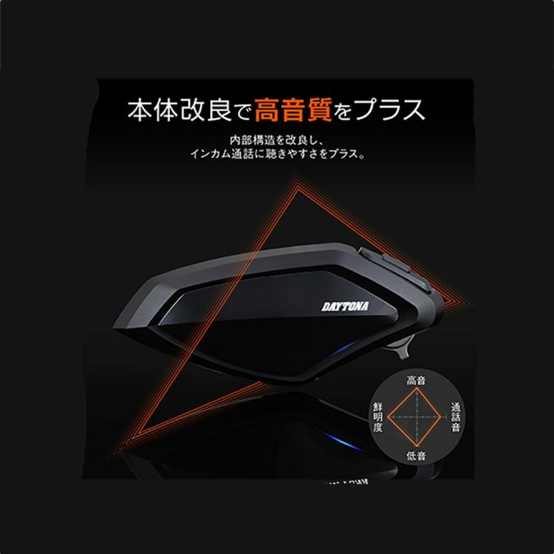 構造を見直し、インカム通話や音楽再生時の鮮明さを向上