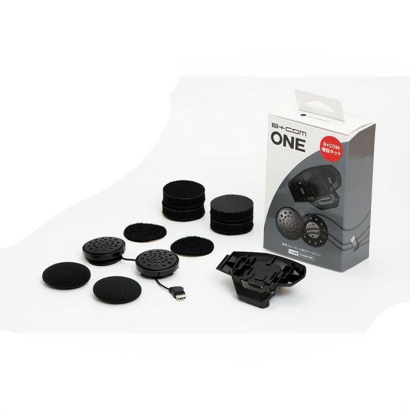 「B+COM 増設キット」にはONE用スピーカーと取付ベースプレートが同梱