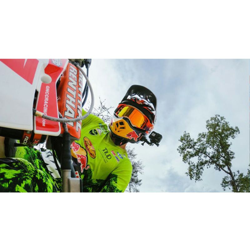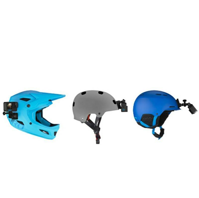 お好きなGoProをヘルメット正面または側面に取り付けられます。付属のスイベル式マウントで、アングルの調節はとっても簡単。