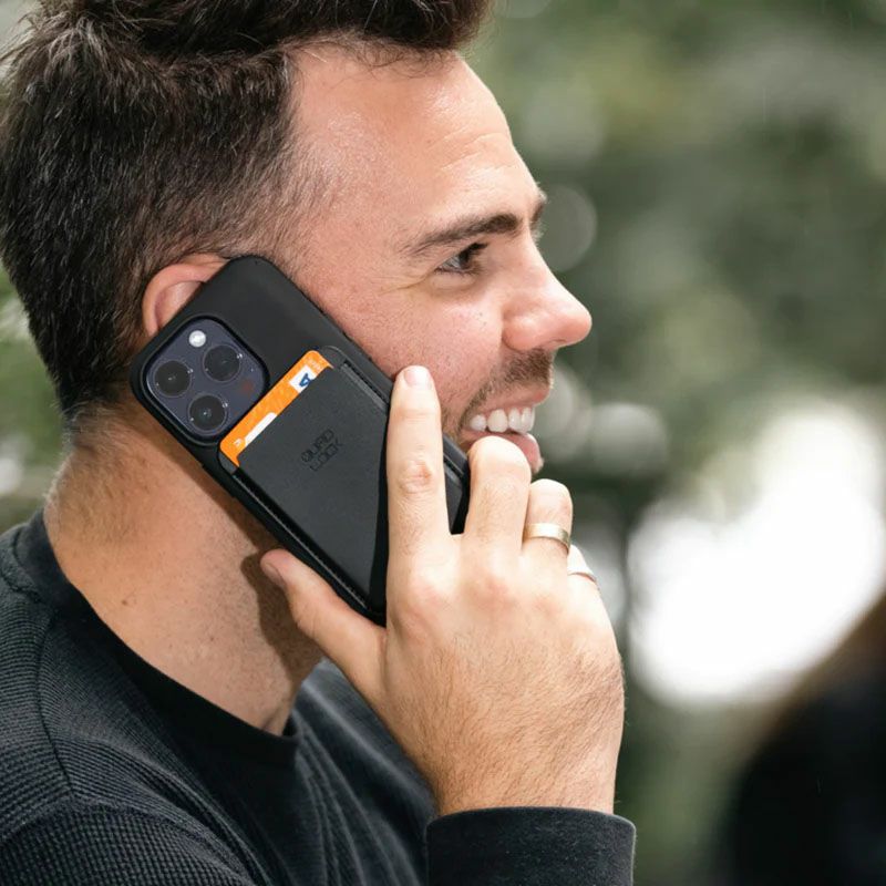 Quad Lock®機能と強力なマグネットにより、あなたのカードは携帯電話の背面に安全に保持されます。ポケットから携帯電話を取り出しても、カードケースはしっかりと固定されたままです。