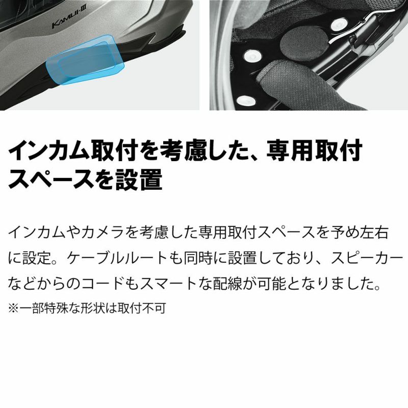 ◆インカム取付を考慮した、専用取付スペースを設置 インカムやカメラを考慮した専用取付スペースを予め左右に設定。ケーブルルートも同時に設置しており、スピーカーなどからのコードもスマートな配線が可能となりました。