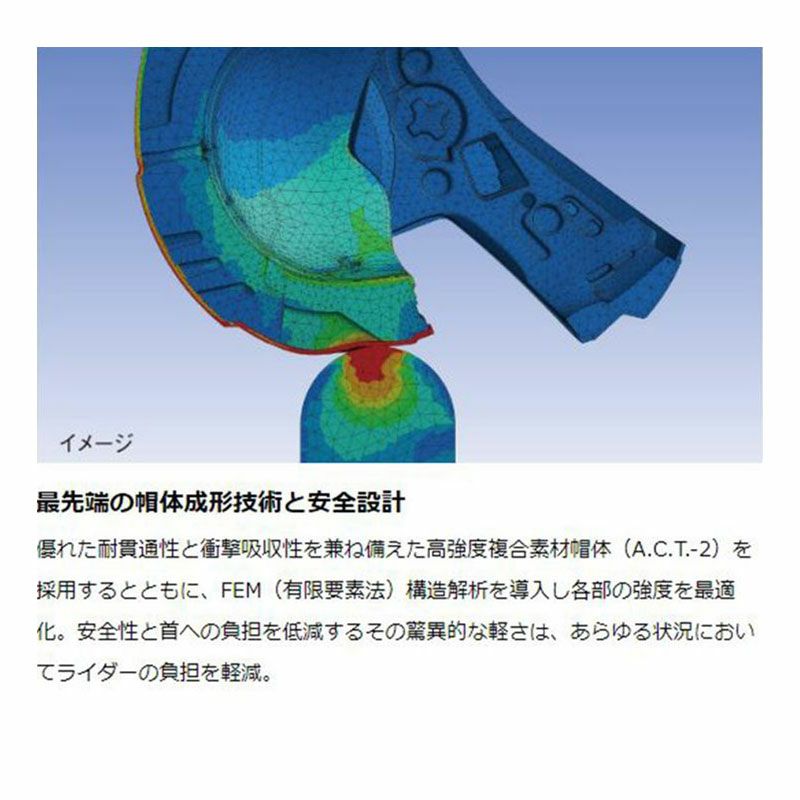 ハイパーガラス繊維と高強度・有機繊維との組み合わせにより軽量化と強度のアップを実現し、さらに進化したハイスペック帽体です。