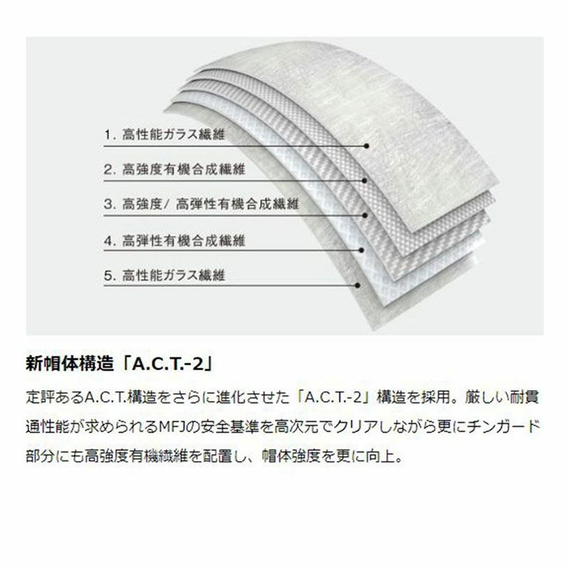 ハイパーガラス繊維と高強度・有機繊維との組み合わせにより軽量化と強度のアップを実現し、さらに進化したハイスペック帽体です。