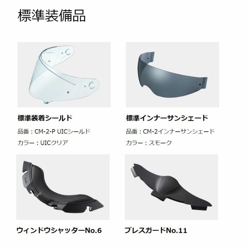 標準装着シールド 品番:CM-2-P UICシールド カラー:UICクリア標準インナーサンシェード 品番:CM-2インナーサンシェード カラー:スモーク