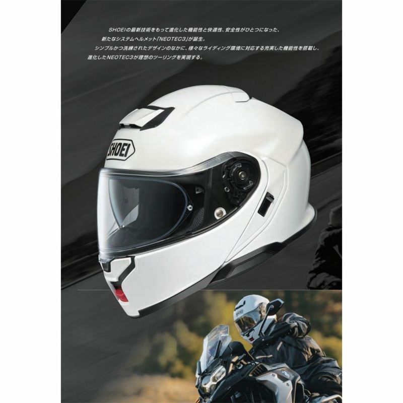 コミュニケーションシステム対応モデルに装備された専用設計の装着機構を「SHOEI COMLINK」としてコンセプト化。NEOTEC3もSHOEI COMLINK対応モデルです。