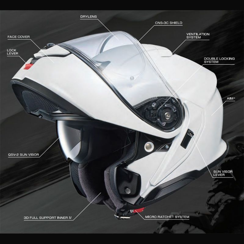 コミュニケーションシステム対応モデルに装備された専用設計の装着機構を「SHOEI COMLINK」としてコンセプト化。NEOTEC3もSHOEI COMLINK対応モデルです。