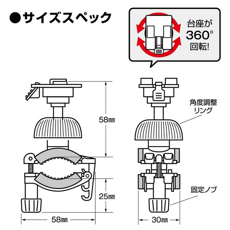 ■クランプ取り付け幅:幅31㎜以上必要■取り付けサイズ:22.2㎜/25.4㎜(1インチ)対応