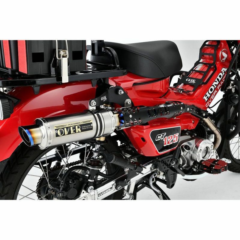 OVERロゴが入った大型のヒートガードが目を引くデザインで、フロントから適度に覗くチタンエキパイが高級感を演出しています。