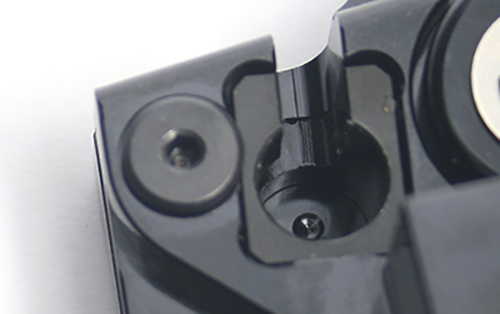 ベアリング内蔵 ブラケットとノッカーを繋ぐピボット部は、ピボットピンを締めこんでもスムースに稼動するように工夫した設計。 ※ELABORATE/赤ロゴ仕様のラインナップはゴールド |