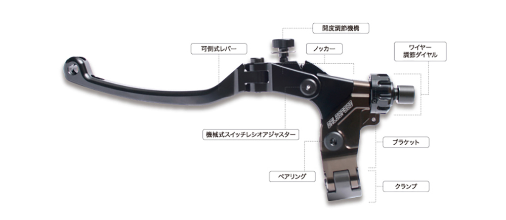 クラッチ操作をスムースにするためのあらゆる調整機能を搭載したワイヤークラッチホルダーキット。 まるでオーダーメイドのような操作感を実現します。