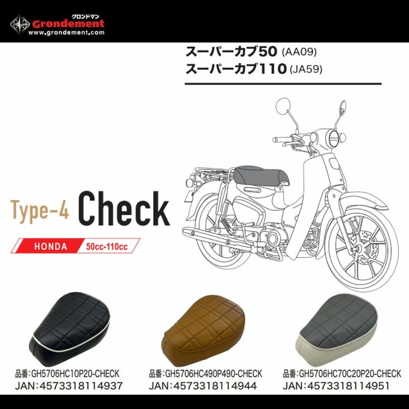 4. Grondement グロンドマン 3D立体裁断シートカバー TYPE4 チェックシートカバー スーパーカブ50(AA09)/スーパーカブ110(JA59) 50cc-110cc